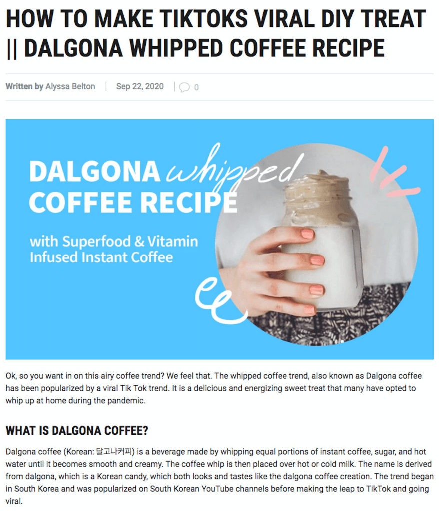 I composed this blog post to capitalize on the viral TikTok coffee trend to include in VitaCup’s Instant coffee marketing materials.