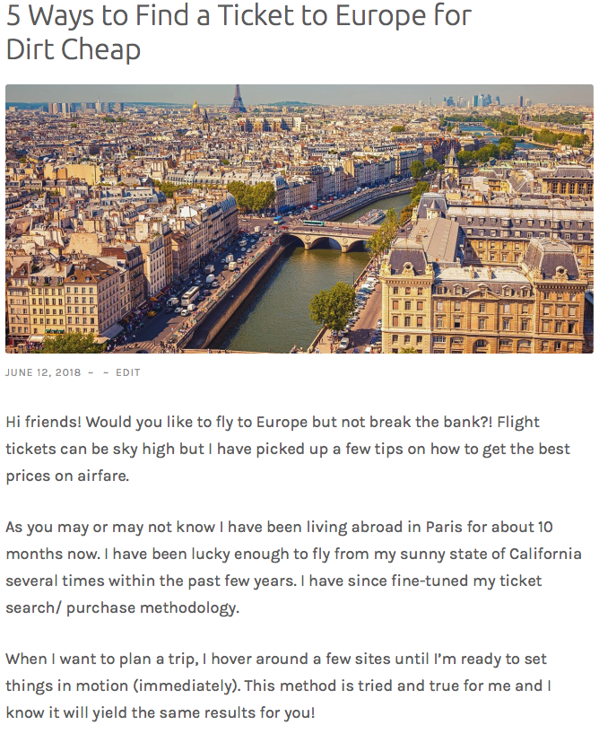 During my studies abroad I managed to snag great deals on trips back home to see my family. I put together this blog post that was in turn shared by the companies mentioned in the post and recieved many comments. Although I no longer use this blog, this post continues to receive hits.